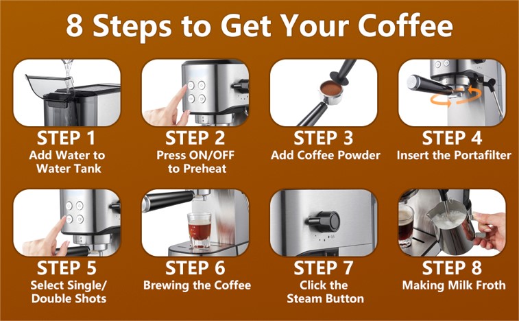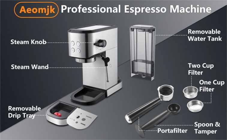 Italian 20bar coffee machine easy to operate stainless steel coffee maker